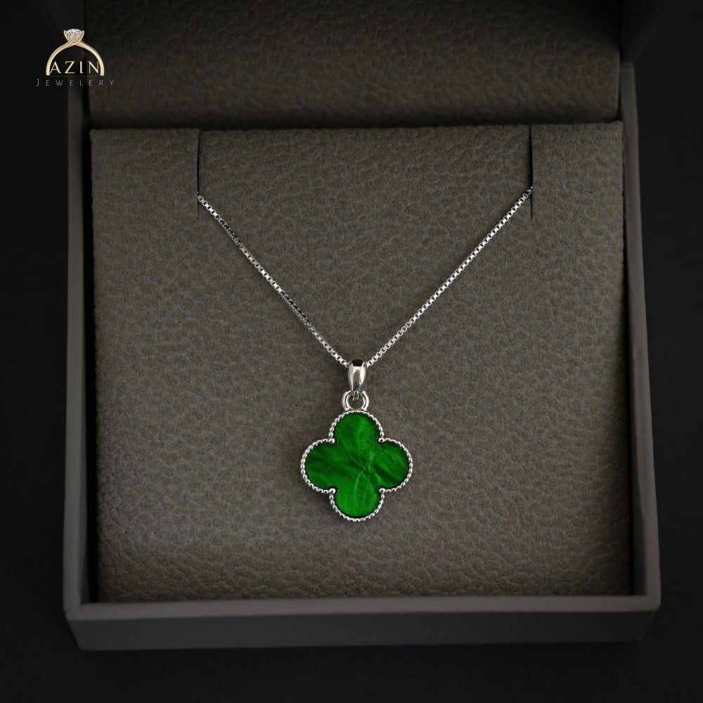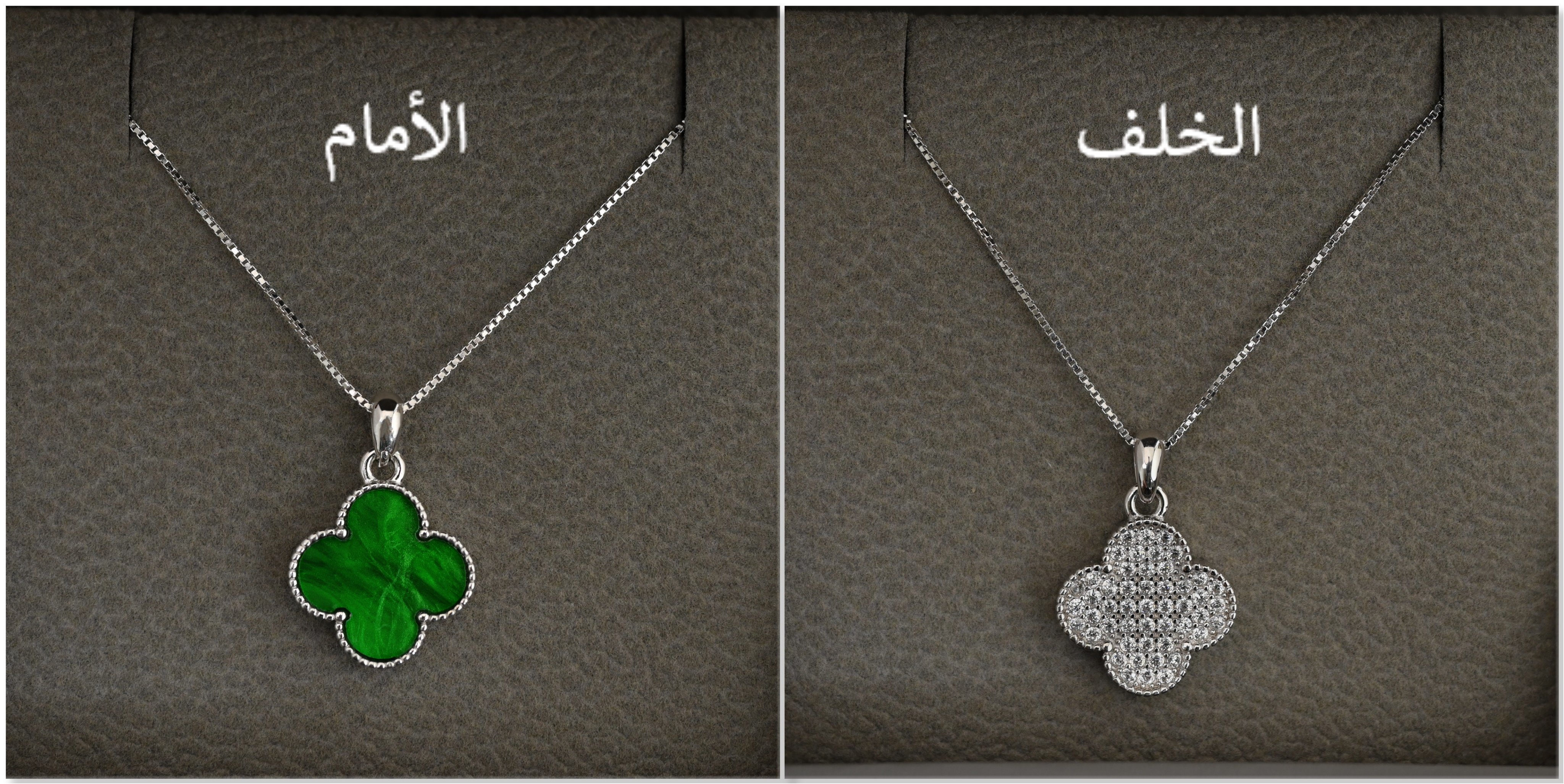 تعليقة وردة فصوص زركون وحجر اخضر من الخلف | فضة عيار 925